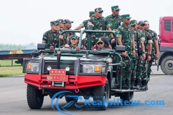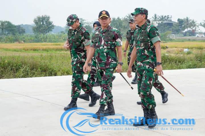 ReaksiNews.com || Panglima Kostrad (Pangkostrad) Letjen TNI Mohammad Fadjar, MPICT., mendampingi Panglima TNI Jenderal TNI Agus Subiyanto meninjau secara langsung kesiapan pelaksanaan upacara tradisi kehormatan militer yang akan digelar di Landasan Suparlan, Pusat Pendidikan dan Latihan Pasukan Khusus (Pusdiklatpassus) TNI AD, Batujajar, Jawa Barat, Kamis (17/4/2025).