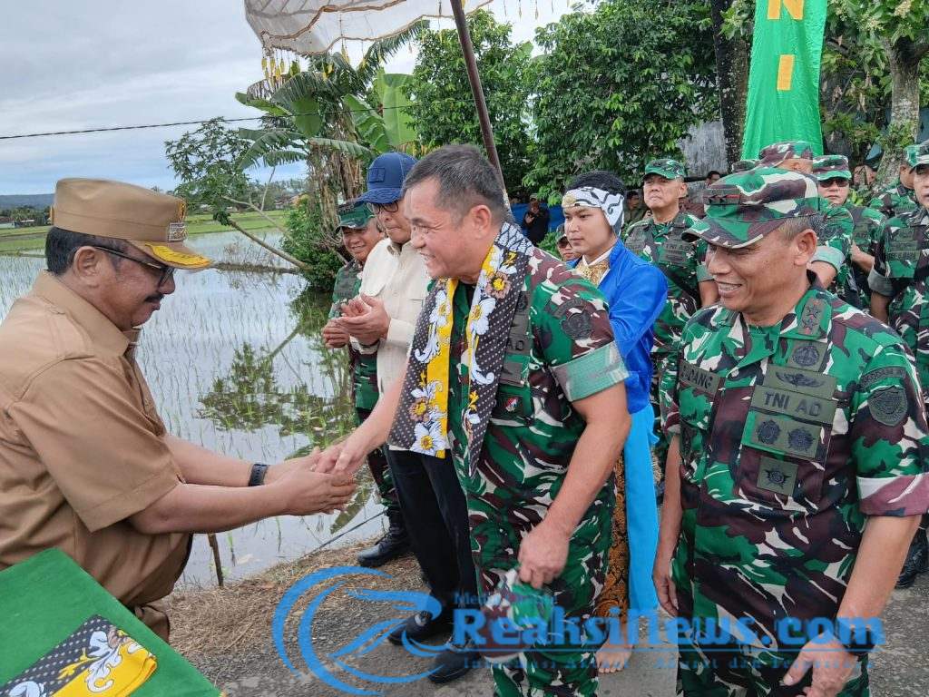 ReaksiNews.com || Sukabumi – Ratusan warga sambut antusias kedatangan Kepala Staf Angkatan Darat (KSAD) Jenderal TNI Maruli Simanjuntak dan Wamentan, Sudaryono sesaat meresmikan Pipanisasi pengairan pertanian di area Persawahan , Desa Ciwaru, Kecamatan Ciemas, Kabupaten ,Senin (21/4/2025).