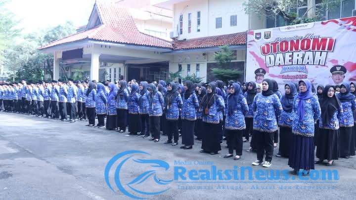 REAKSINEWS.COM || Bupati Sukabumi, H Asep Japar memimpin upacara peringatan Hari Otonomi Daerah (Otda) ke-29 tingkat Kabupaten Sukabumi yang digelar di Halaman Parkir Sekretariat Daerah, Kabupaten Sukabumi, Palabuhanratu, Jumat (25/4/2025). Peringatan tahun ini mengusung tema Sinergi Pusat dan Daerah Membangun Nusantara Menuju Indonesia Emas 2045.