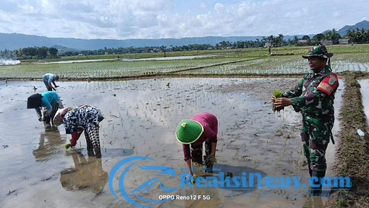 REAKSINEWS.COM || Kota Sukabumi – Babinsa (Babinsa) Bojongkerta Kopda Kusdiarto Koramil 2203/Warungkiara mendampingi warga untuk mendukung program tahanan pangan pemerintah.