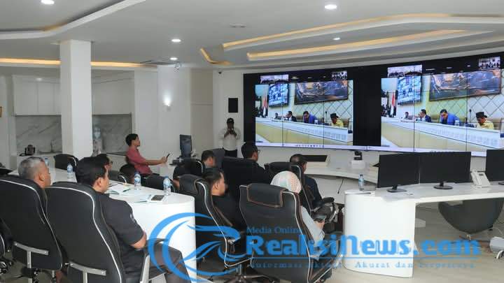 REAKSINEWS.COM || Bupati Sukabumi, H Asep Japar didampingi Sekretaris Daerah serta unsur Forkopimda mengikuti Rapat Kerja dan Rapat Dengar Pendapat (RDP) bersama Dewan Perwakilan Rakyat Republik Indonesia (DPR RI) secara virtual dari Command Center, Sekretariat Daerah Kabupaten Sukabumi, Selasa (29/4/2025).