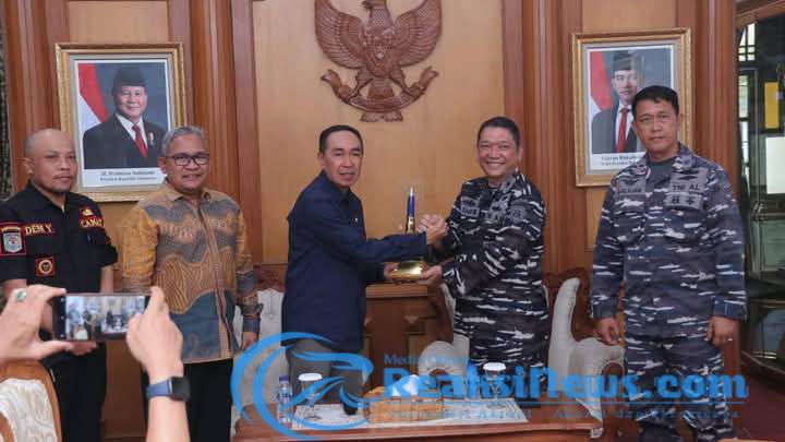 REAKSINEWS.COM || Komandan Pangkalan TNI Angkatan Laut (Danlanal) Bandung, Kolonel Laut (P) Muhamad Taufik melakukan kunjungan kerja ke Kabupaten Sukabumi dan disambut langsung oleh Sekretaris Daerah Kabupaten Sukabumi, H Ade Suryaman serta unsur Forkopimda dan Camat Palabuhanratu, di Pendopo Palabuhanratu, Kamis (8/5/2025).