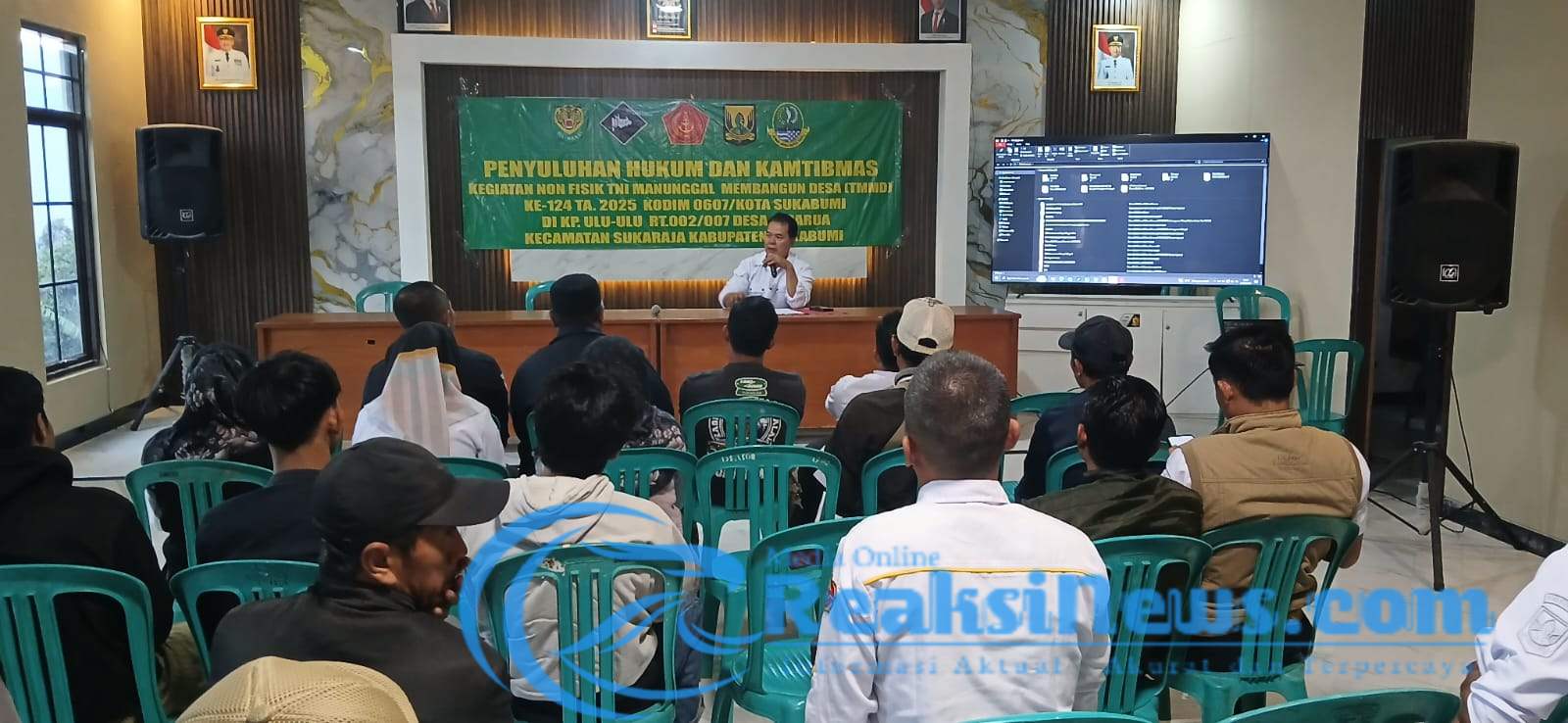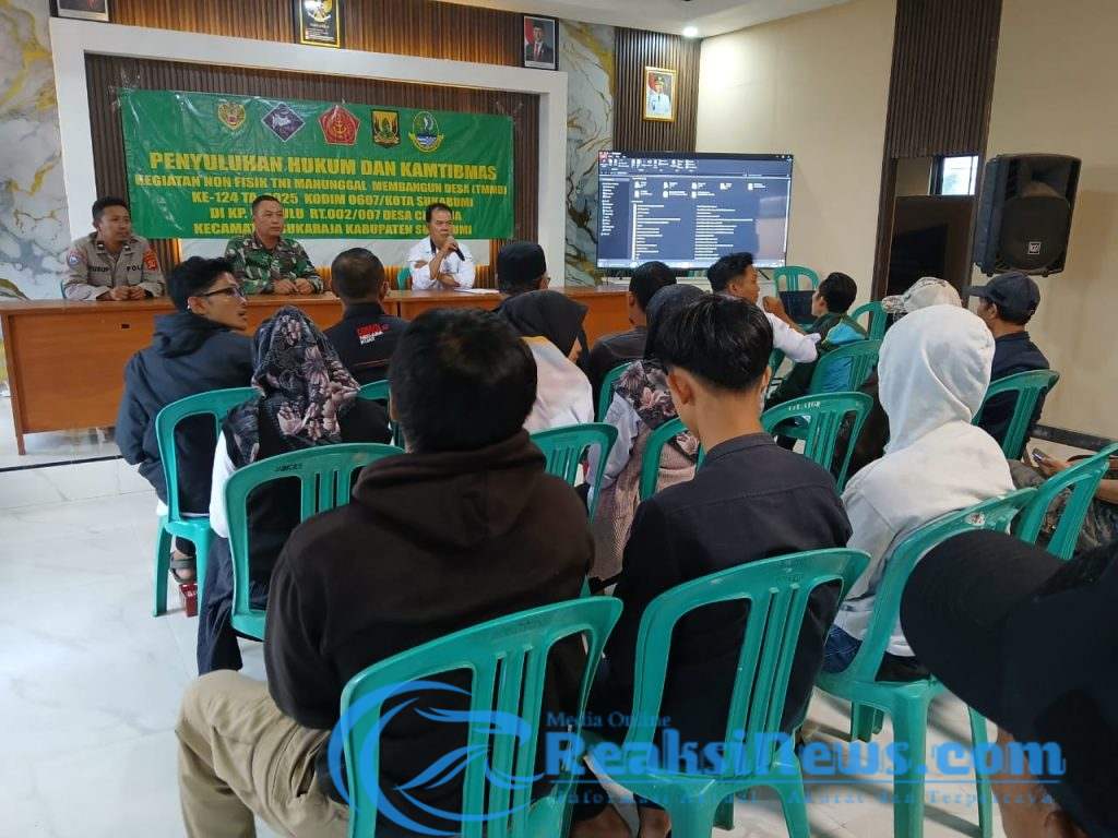 REAKSINEWS.COM || SUKABUMI – Penyuluhan Hukum dan keamanan ketertiban masyarakat (kamtibmas) bagi warga Desa Cisarua. Dalam rangka kegiatan non fisik (TMMD) ke-124, Kodim 0607/Kota Sukabumi, bertempat di Aula Balai Desa Cisarua Jalan Goalpara Sukaraja, Rabu (14/05/2025).
