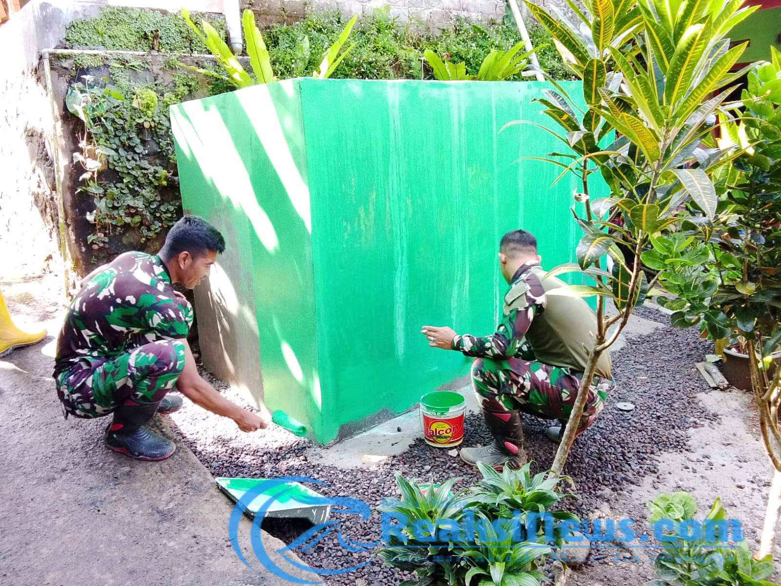 REAKSINEWS.COM || SUKABUMI – Anggota Satgas TNI Manunggal Membangun Desa (TMMD) ke-124 Kodim 0607/Kota Sukabumi terus mempercepat progres pekerjaan fisik di Desa Cisarua, Kecamatan Sukaraja, Kabupaten Sukabumi. Salah satu kegiatan yang tengah dikebut adalah penyelesaian pengecatan bak penampungan air bersih.( Sabtu,17/05/2025).
