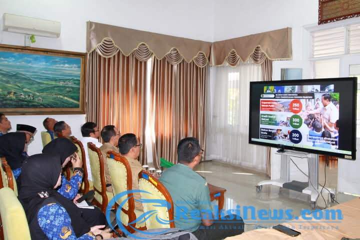 REAKSINEWS.COM || SUKABUMI – Sekda Kabupaten Sukabumi H. Ade Suryaman mengikuti rapat koordinasi (rakor) pengendalian inflasi di daerah secara virtual dari Pendopo, Senin, 19 Mei 2025. Dalam rakor yang diikuti sejumlah kepala perangkat daerah itu, dibahas juga terkait percepatan pembentukan koperasi desa/kelurahan merah putih.