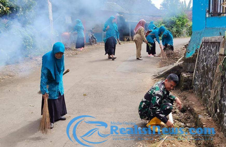 REAKSINEWS.COM || SUKABUMI – Wujudkan hidup sehat dan eratkan hubungan yang baik dengan warga binaan, Babinsa Koramil 2203/Warungkiara Kodim 0622/Kabupaten Sukabumi Serka Dodi bersama Ibu PKK Desa mangunjaya bergotong royong membersihkan Jalan yang berada di Desa Mangunjaya, Kecamatan Bantargadung, Kabupaten Sukabumi Jawa Barat, Senin (19/5/2025).