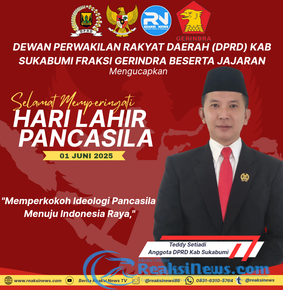 REAKSINEWS.COM || Tanggal 1 Juni setiap tahunnya diperingati sebagai hari lahirnya lambang dasar negara yaitu Pancasila. Oleh karena itu, Anggota Dewan Perwakilan Rakyat Daerah (DPRD) Kabupaten Sukabumi Teddy Setiadi mengajak masyarakat agar terus mengamalkan nilai-nilai Pancasila.