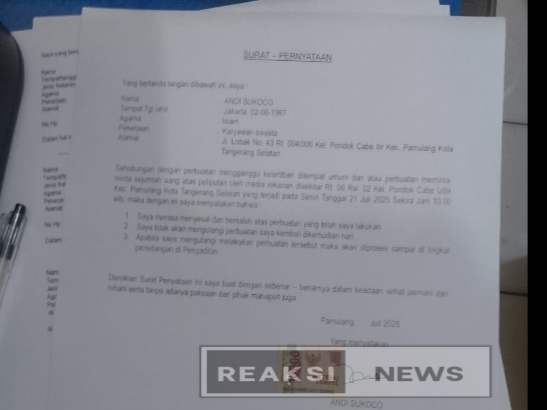 Setelah kejadian tersebut kemudian saya melaporkan Ke Polsek Pamulang dan bertemu penyidik yang berinisial Iv, sebelum saya mendapatkan surat pengantar visum, saya langsung di ajak ke TKP ( Tempat Kejadian Perkara) setelah dari TKP kembali lagi ke Polsek Pamulang, kemudian saya diminta tanda tangan pernyataan damai dan pernyataan pengakuan bersalah