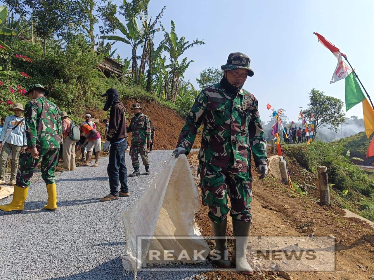 REAKSINEWS.COM || SUKABUMI – Aksi nyata Satgas TMMD ke-125 di Desa Langkapjaya, Kecamatan Lengkong, viral di kalangan warga! Dipimpin langsung oleh Komandan SSK TMMD, Kapten Inf Yefri Susanto, para prajurit TNI bersama ratusan warga kompak melakukan pengaspalan jalan penghubung Kampung Sampalan–Cimanggu sejak pukul 07.00 WIB pagi tadi.