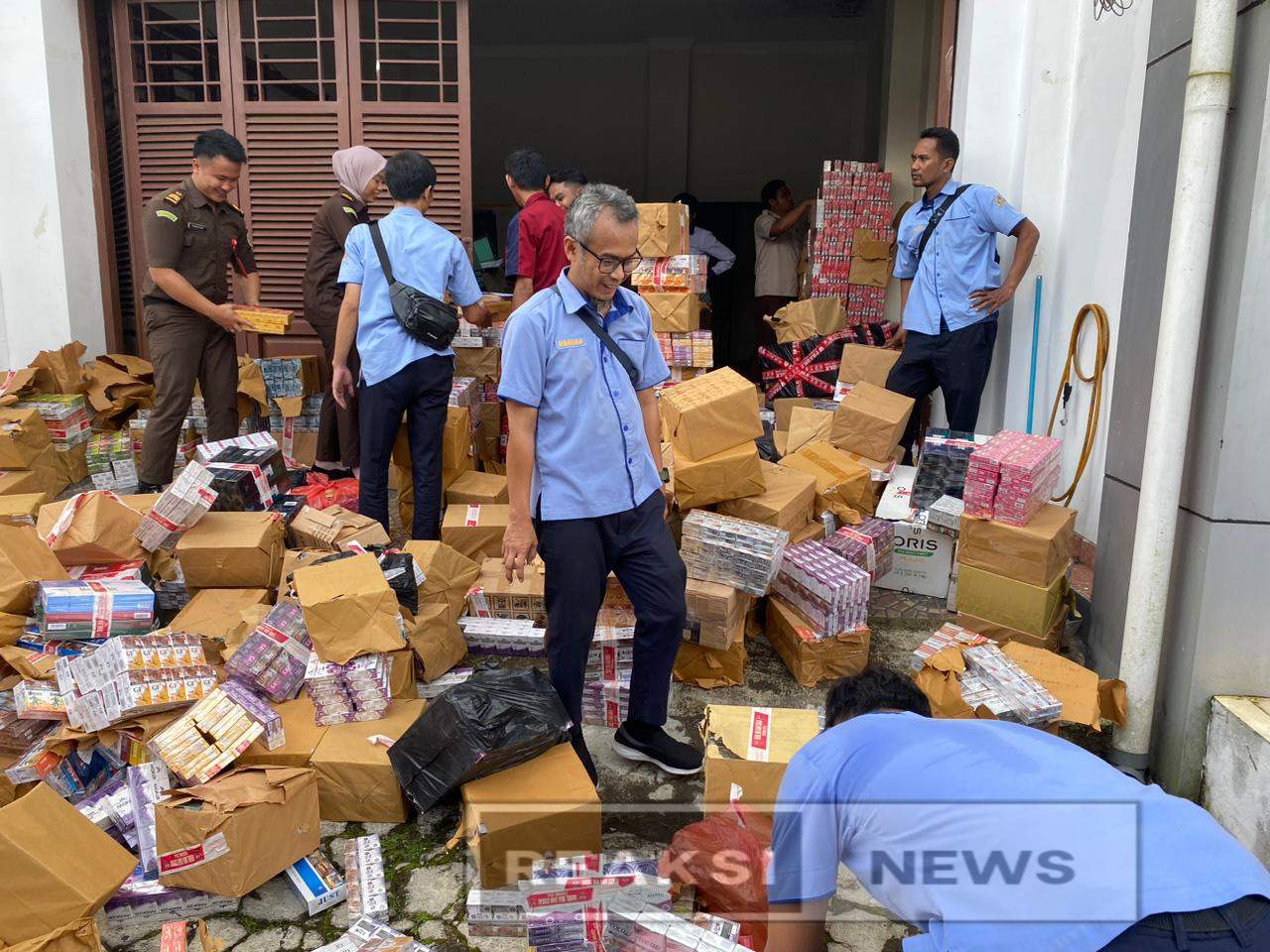 Kejari Kabupaten Sukabumi mendapatkan pelimpahan Tahap II berikut dua tersangka dan barang bukti dari Bea Cukai Bogor. Kedua tersangka ini mengedarkan rokok ilegal di Pasar Cicurug melalui dua toko,” ujar Agus.