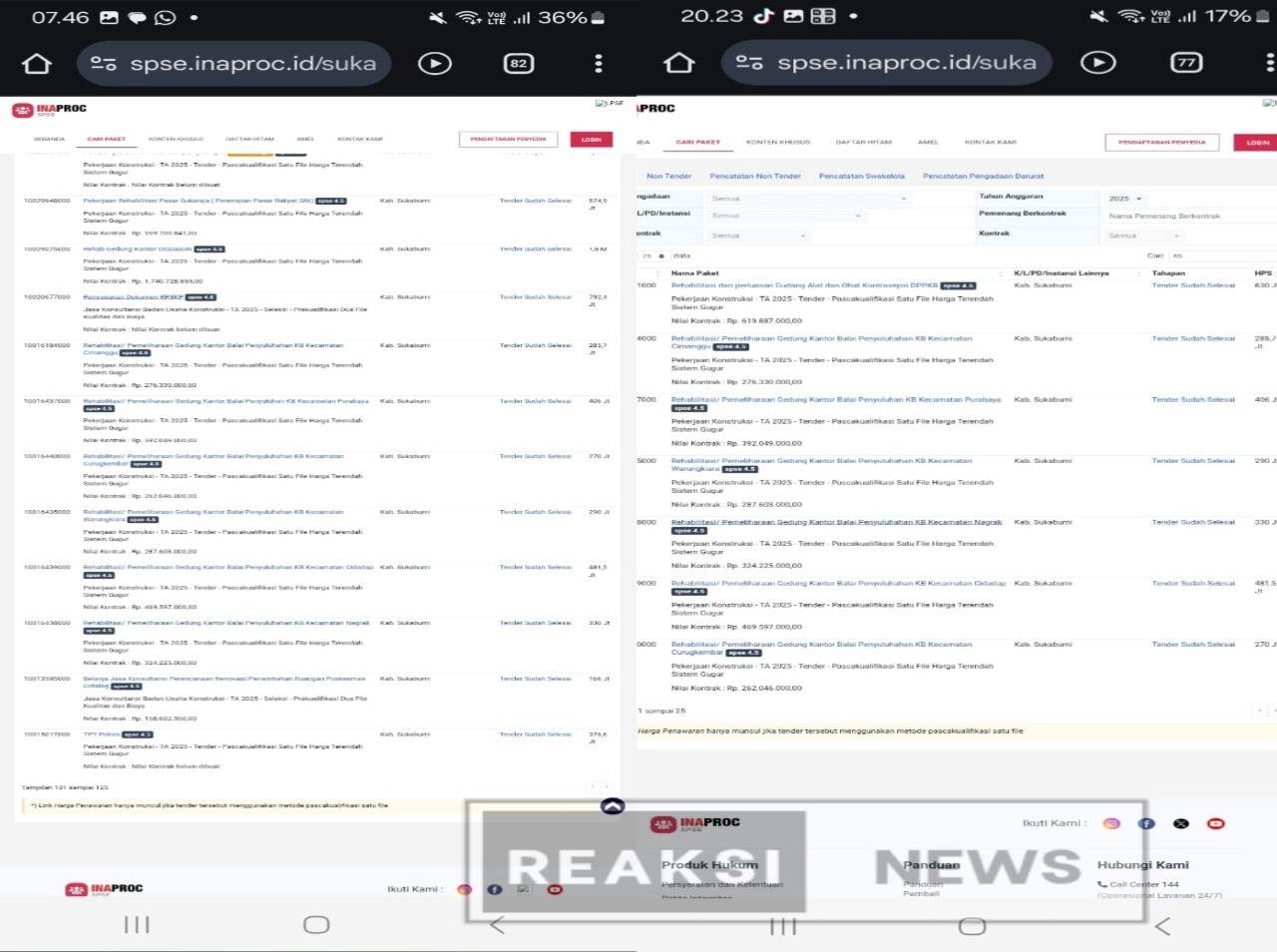 REAKSINEWS.COM || SUKABUMI – Sejumlah paket pekerjaan konstruksi dan jasa konsultansi di Kabupaten Sukabumi Tahun Anggaran 2025 tercatat dalam Layanan Pengadaan Secara Elektronik (LPSE).