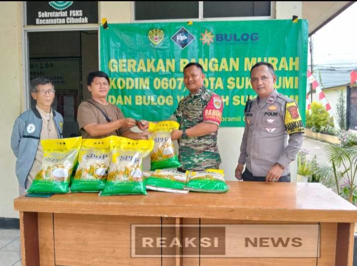REAKSINEWS.COM || SUKABUMI – Kodim 0607/Kota Sukabumi bersama Bulog Wilayah Sukabumi menggelar Gerakan Pangan Murah di Sekretariat FSKS Kecamatan Cibadak, Sabtu (30/8/2025).