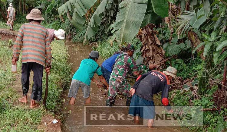 REAKSINEWS.COM || WARUNGKIARA – Kopda Kusdiarto, Anggota Koramil 2203/Warungkiara, bersama warga melaksanakan kerja bakti membersihkan saluran irigasi di wilayah Desa Bojongkerta, Kecamatan Warungkiara, Kabupaten Sukabumi, Minggu (31/8/2025).