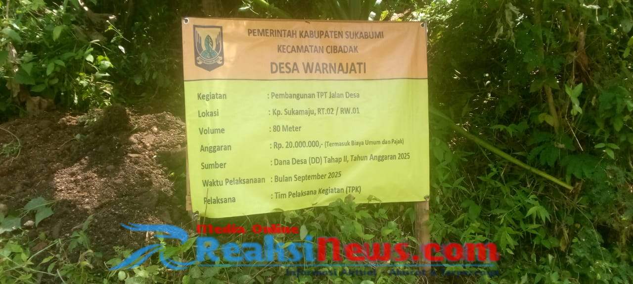 REAKSINEWS.COM || SUKABUMI – Pemerintah Desa (Pemdes) Warnajati, Kecamatan Cibadak, Kabupaten Sukabumi, mulai melaksanakan pembangunan infrastruktur jalan lingkungan di wilayah RW 07. Pekerjaan ini berupa peningkatan jalan melalui pengaspalan dengan volume sepanjang 350 meter dan lebar 1 meter.