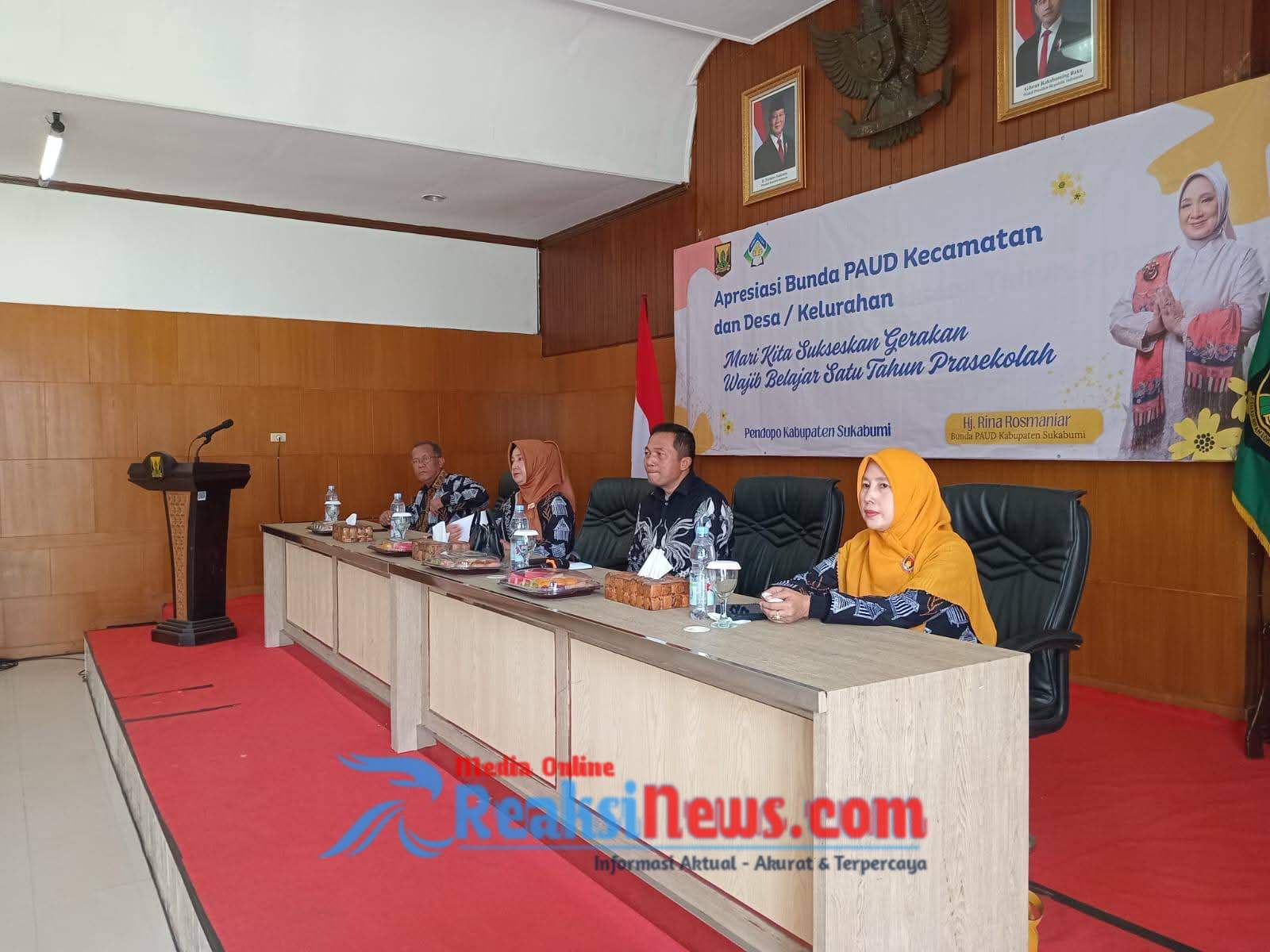 Bunda Paud Kabupaten Sukabumi Hj. Rina Rosmaniar Japar mengapresiasi bunda Paud Kecamatan, Desa dan Kelurahan yang sudah berkiprah membantu Pemerintah Daerah dalam mencerdaskan anak bangsa.