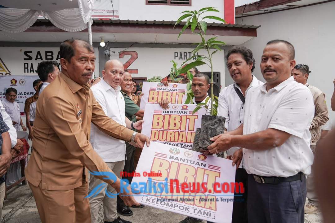REAKSINEWS.COM || TOBA – Anggota Komisi I DPR RI Fraksi Partai Gerindra, Sabam Rajagukguk, terus menunjukkan komitmennya dalam memperjuangkan kepentingan rakyat di daerah pemilihannya. Kader dari Partai yang dipimpin oleh Prabowo Subianto ini menyalurkan bantuan bibit unggul Mangga, dan Durian, kepada sejumlah kelompok tani serta paket sembako kepada masyarakat di Kabupaten Toba, Sumatera Utara.