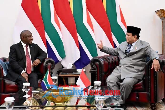 REAKSINEWS.COM || JAKARTA – Presiden RI Prabowo Subianto menyambut secara resmi kunjungan kenegaraan Presiden Republik Afrika Selatan, Matamela Cyril Ramaphosa di Istana Merdeka, Jakarta, pada Rabu (22/10/2025) dalam upacara kenegaraan.
