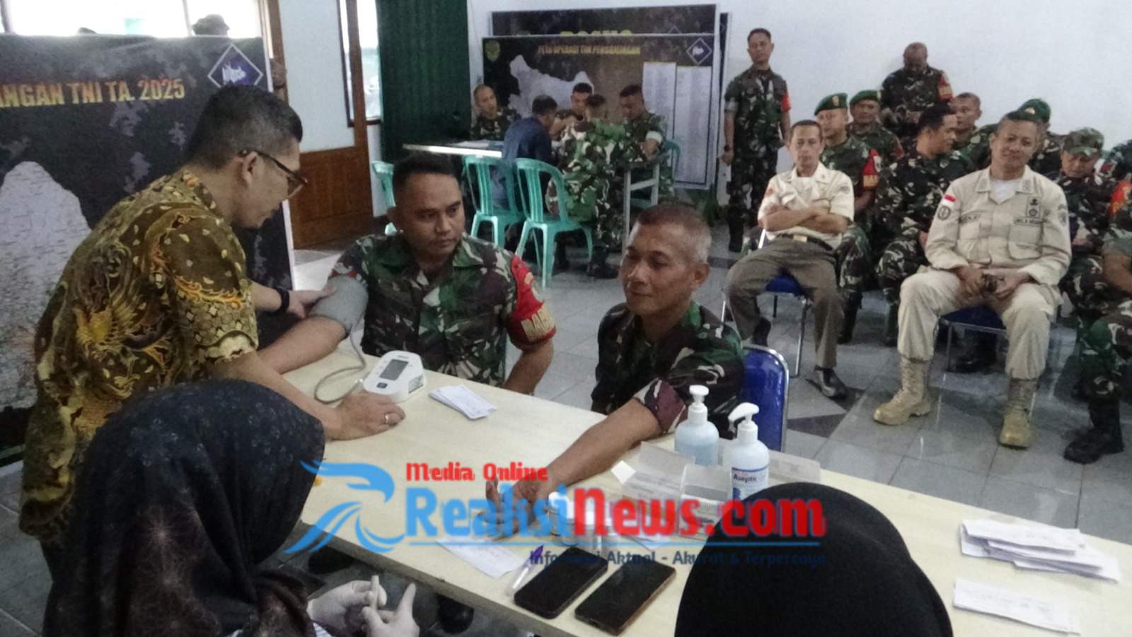 Anggota Kodim 0607/Kota Sukabumi berkumpul dan melaksanakan antrian pemeriksaan mulai pendaftaran dan masuk ke masing-masing bagian seperti tensi,kadar gula darah, Asam urat dan EKG pemeriksaan kesehatan jantung.