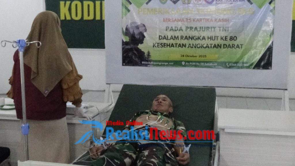 Kasdim 0607/Kota Sukabumi Mayor Inf. Hendra Bagus Arioko mengatakan pemeriksaan kesehatan ini dilakukan untuk mengetahui tingkat kesehatan seluruh personel sekaligus mendeteksi penyakit secara dini untuk dilakukan pengobatan lanjutan.