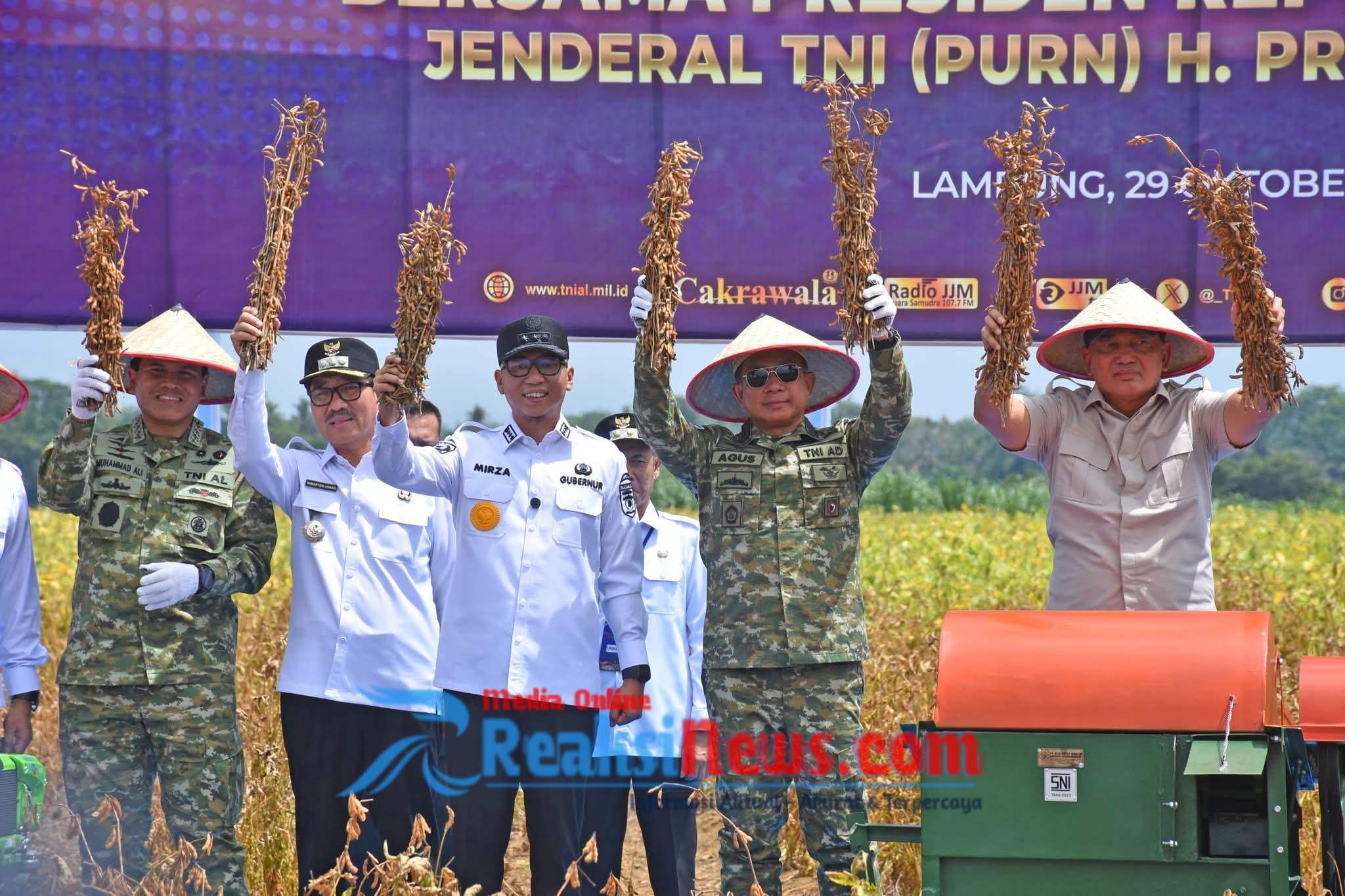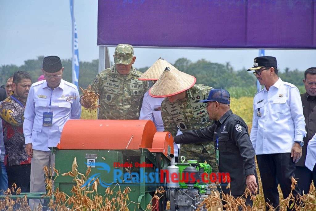 Panglima TNI Dampingi Menhan RI Tinjau Panen Kedelai Garuda Merah Putih di Lampung Utara