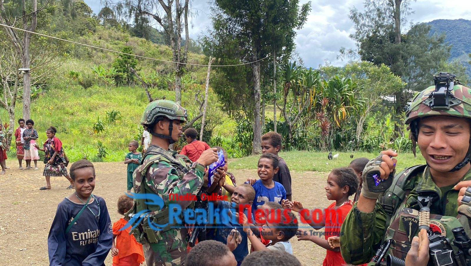 REAKSINEWS.COM || Intan Jaya Papua Tengah – Satgas Pamtas RI PNG Mobile Yonif 113/JS kembali memberikan sentuhan kasih dan kembalikan keceriaan anak-anak melalui kegiatan pemberian gula-gula/permen kepada anak-anak kampung Bilai Distrik Homeyo Kabupaten Intan Jaya.