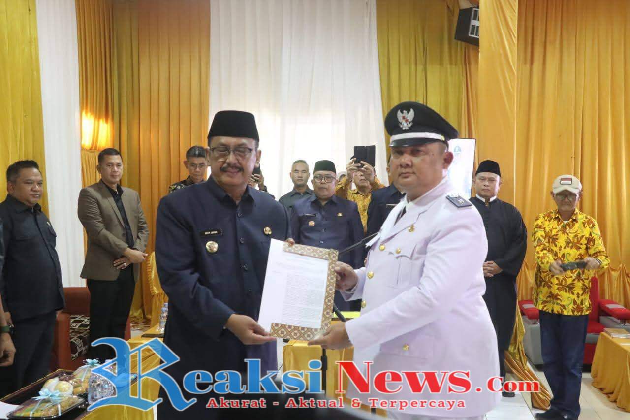 REAKSINEWS.COM || SUKABUMI – Bupati Sukabumi H.Asep Japar melantik Hilman Nulhakim sebagai Kepala Desa Pawenang, Kecamatan Nagrak, Sabtu, 29 November 2025. Prosesi pelantikan yang berlangsung khidmat dan dihadiri sejumlah unsur Forkopimda ini, dilaksanakan di Balai Desa Pawenang Kecamatan Nagrak.