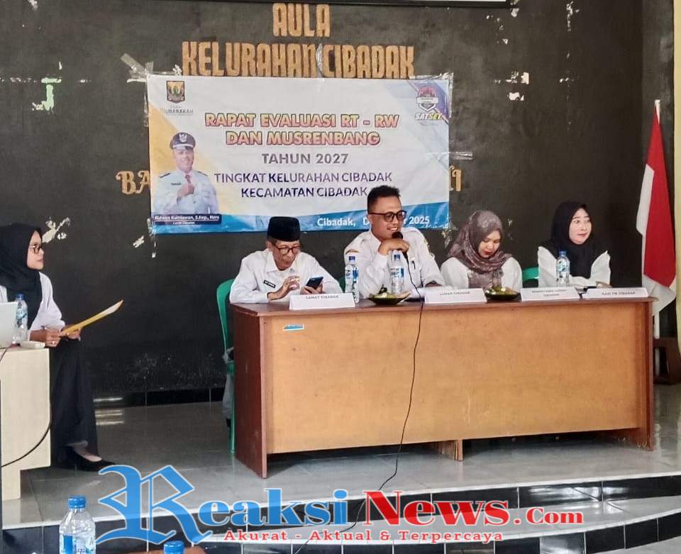 REAKSINEWS.COM || CIBADAK – Kelurahan Cibadak, Kecamatan Cibadak menggelar Rapat Evaluasi RT/RW sekaligus persiapan Musyawarah Perencanaan Pembangunan (Musrenbang) Tahun 2027, pada Rabu siang. Kegiatan ini dihadiri para pemangku wilayah, mulai dari Sekmat Cibadak, Lurah Cibadak Ridwan Kurniawan, Babinsa, Bhabinkamtibmas, Ketua LPM, Ketua Karang Taruna, Ketua MUI, serta 29 Ketua RW dan para Ketua RT se-Kelurahan Cibadak.