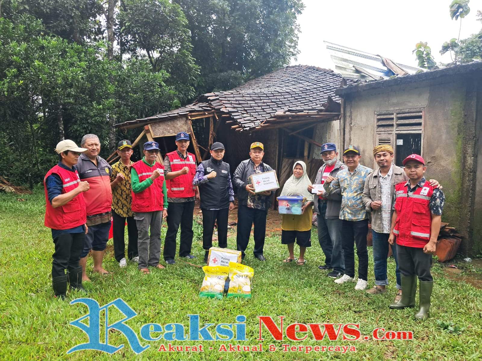Yudi Sutriana, S. E,. M. M, Camat Lembursitu bersama PMI Kota Sukabumi dan relawan SIBAT PMI Kecamatan Lembursitu yang didampingi langsung oleh Ketua RT RW setempat merespon cepat memberikan bantuan bencana kepada korban rumah roboh tersebut.