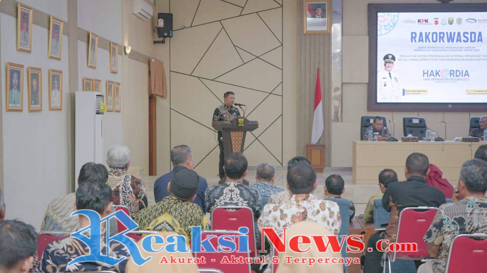 REAKSINEWS.COM || SUKABUMI – Wakil Bupati Sukabumi H Andreas membuka Rapat Koordinasi Pengawasan Daerah (Rakorwasda) Tahun 2025 sebagai upaya memperkuat sistem pengendalian internal perangkat daerah melalui manajemen risiko serta pembangunan budaya antikorupsi. Kegiatan tersebut dibuka langsung oleh Wakil Bupati Sukabumi, H Andreas, di Aula Sekretariat Daerah Kabupaten Sukabumi, Kamis (18/12/2025).