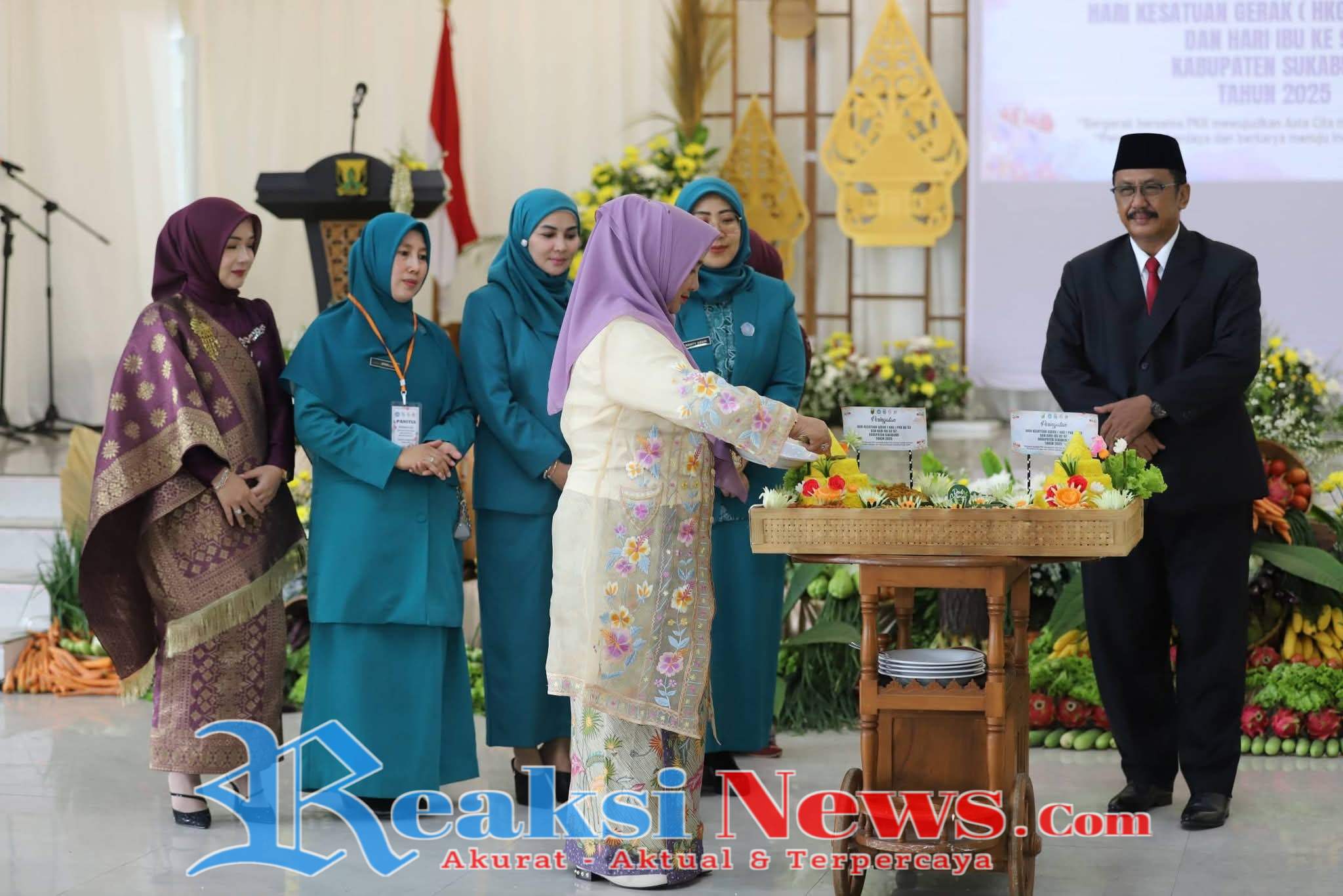 REAKSINEWS.COM || SUKABUMI – Pemerintah Kabupaten Sukabumi memperingati Hari Ibu ke 97 tingkat Kabupaten Sukabumi di Grand Sulanjana,Senin, 22 Desember 2025. Kegiatan yang dihadiri langsung Bupati Sukabumi H. Asep Japar, Wakil Bupati Sukabumi, H. Andreas, Sekda, H.Ade Suryaman, dan unsur Forkopimda ini, dirangkaikan pula dengan Hari Kesatuan Gerak (HKG) PKK Ke-53.