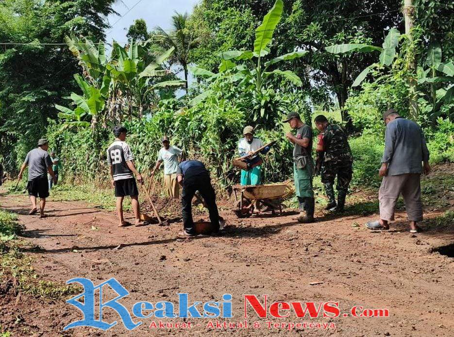 Babinsa Buanajaya Serka Wahyudi Koramil 2203/Warungkiara Bersama Warga Gelar Kerja Bakti Bersihkan Jalan Lingkungan