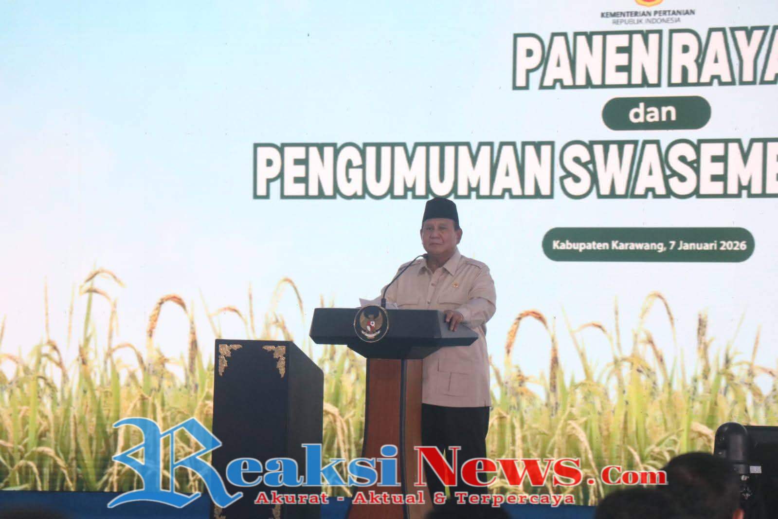 REAKSINEWS.COM || Pemerintah Kabupaten Sukabumi menerima penghargaan dari Presiden Republik Indonesia Prabowo Subianto atas dedikasi dan kontribusinya dalam mendukung pencapaian swasembada pangan tahun 2025. Penghargaan tersebut diserahkan dalam rangkaian panen raya nasional yang digelar di Halaman Kantor Kecamatan Cilebar, Kabupaten Karawang, Rabu (7/1/2026).