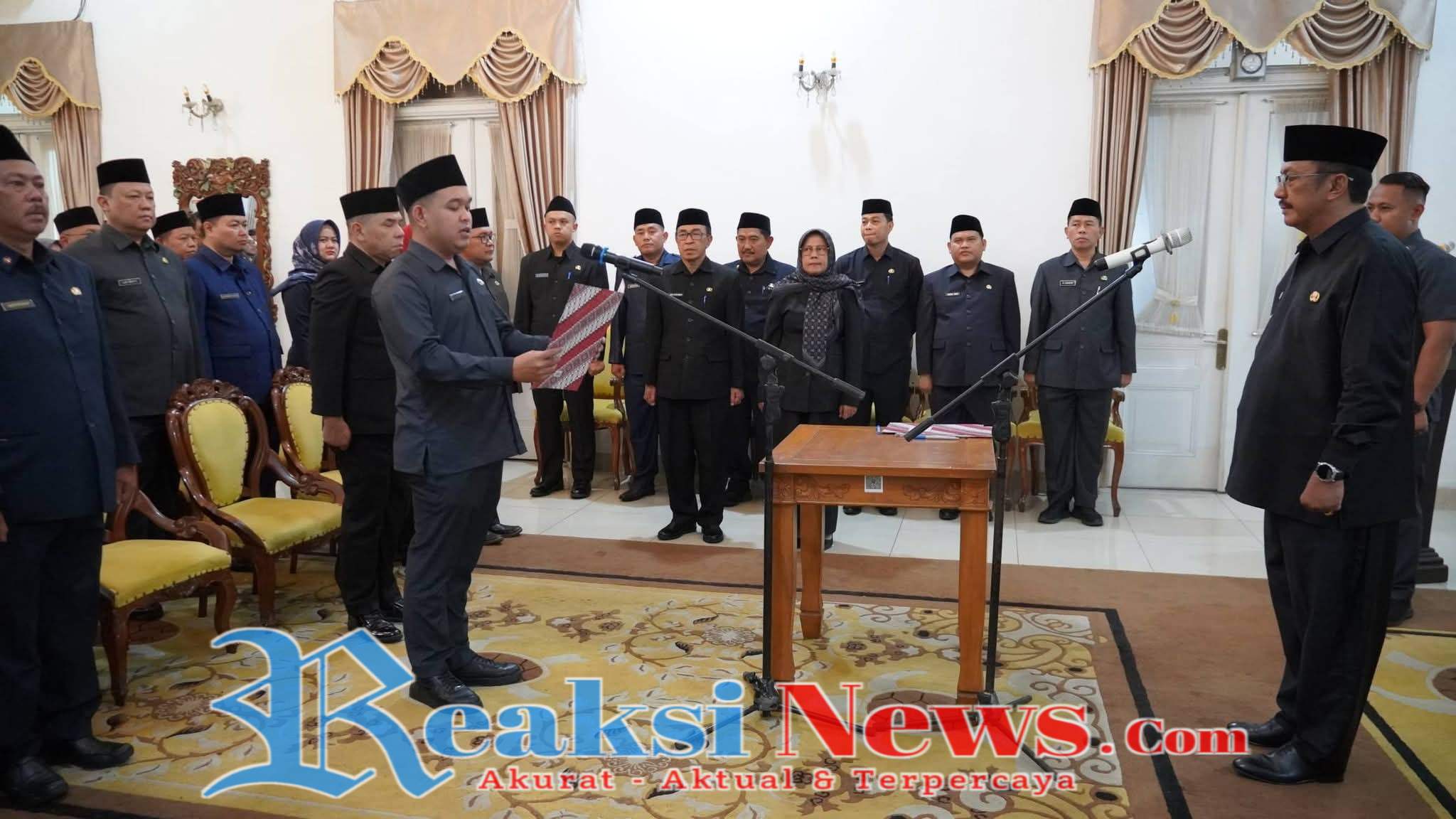 REAKSINEWS.COM || Bupati Sukabumi H. Asep Japar mengukuhkan dan mengambil sumpah janji/jabatan manajerial di Lingkungan Pemerintah Kabupaten Sukabumi yang dilaksanakan di Pendopo Sukabumi, Kamis, 8 Januari 2026. Hal itu pasca ada perubahan nomenklatur Struktur Organisasi dan Tata Kerja (SOTK) di sejumlah perangkat daerah.