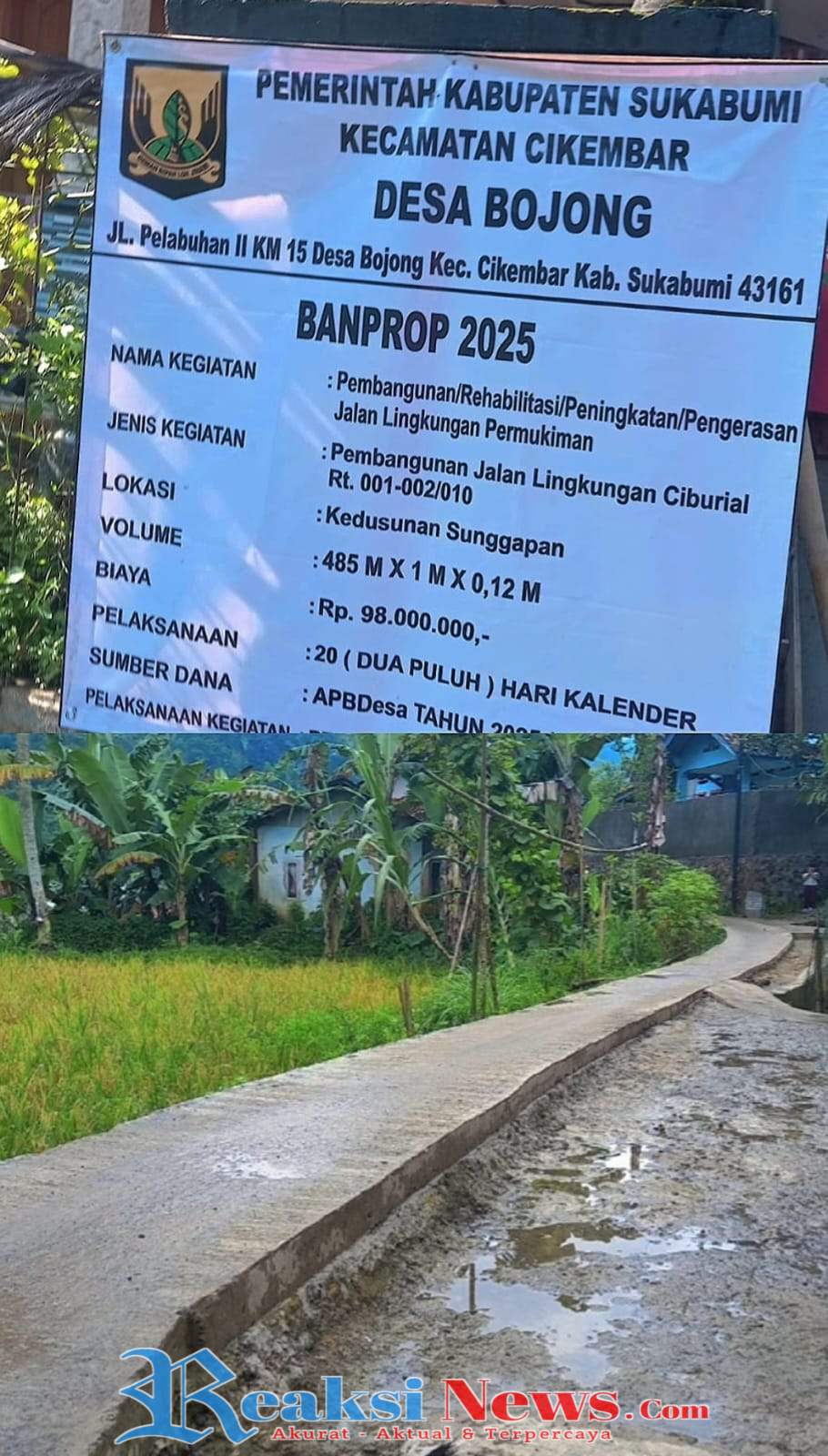 REAKSINEWS.COM || SUKABUMI – Pembangunan jalan lingkungan di Kampung Ciburial Dusun Sunggapan RT/RW 01-02/10 Desa Bojong, Kecamatan Cikembar, yang dibiayai Bantuan Provinsi Jawa Barat Tahun Anggaran 2025 dengan nilai Rp98 juta, menuai polemik ditengah masyarakat.