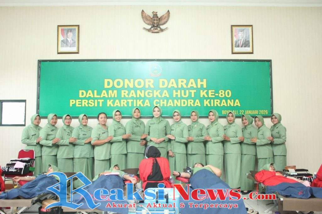 REAKSINEWS.COM || BOYOLALI – Dalam rangka menyambut Hari Ulang Tahun (HUT) ke-80 Persit Kartika Chandra Kirana, Persit KCK Cabang XLV Dim 0724/Boyolali menggelar kegiatan bakti sosial donor darah yang berlangsung di Aula Makodim 0724/Boyolali, Jalan Padanaran, Desa Tegalmulyo, Kecamatan Mojosongo, Kabupaten Boyolali, Kamis (22/01/2026).