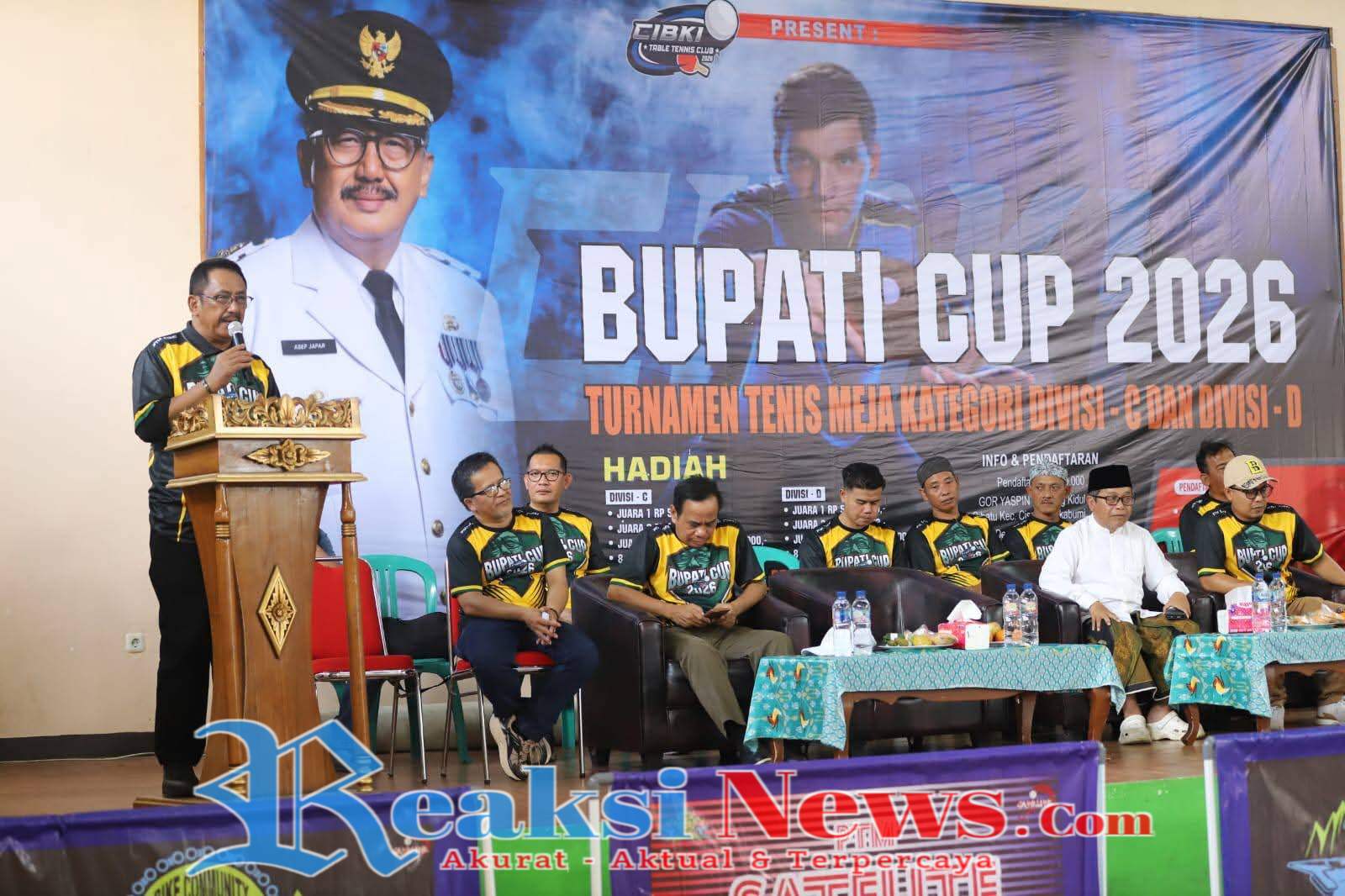 Turnamen Tenis Meja Bupati Cup 2026 dibuka langsung oleh Bupati Sukabumi. Pembukaan ditandai dengan pemukulan bola servis pertama oleh Bupati sebagai simbol dimulainya pertandingan.