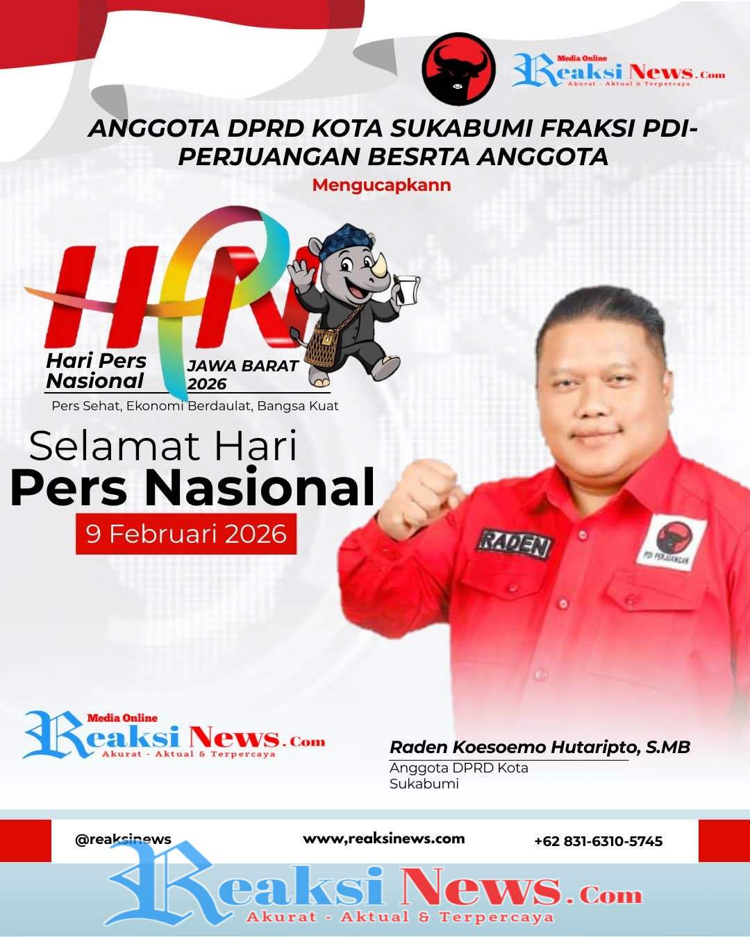 REAKSINEWS.COM || Raden Koesoemo Hutaripto, S.MB, mengucapkan Selamat Hari Pers Nasional (HPN) 2026 kepada para insan pers di Tanah Air.