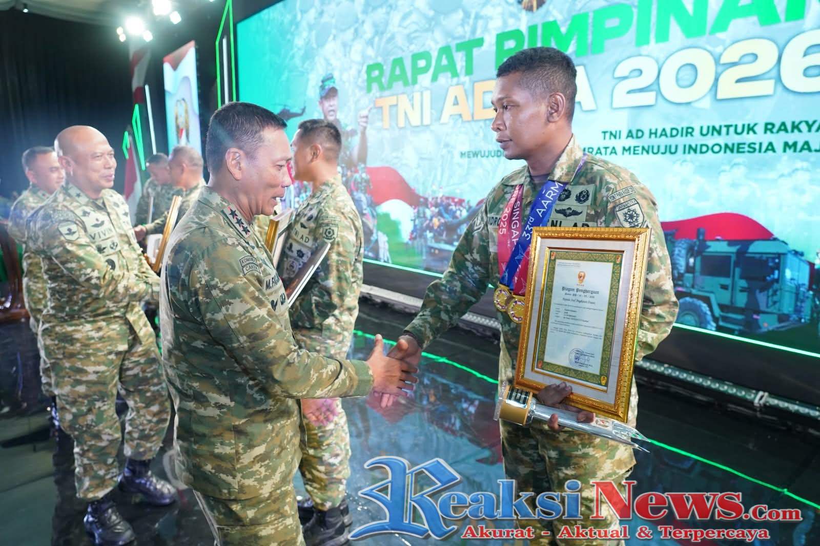 Penghargaan tersebut diberikan sebagai bentuk apresiasi atas capaian gemilang yang mengharumkan nama TNI AD dan Indonesia. Jumat (13/02/2026).