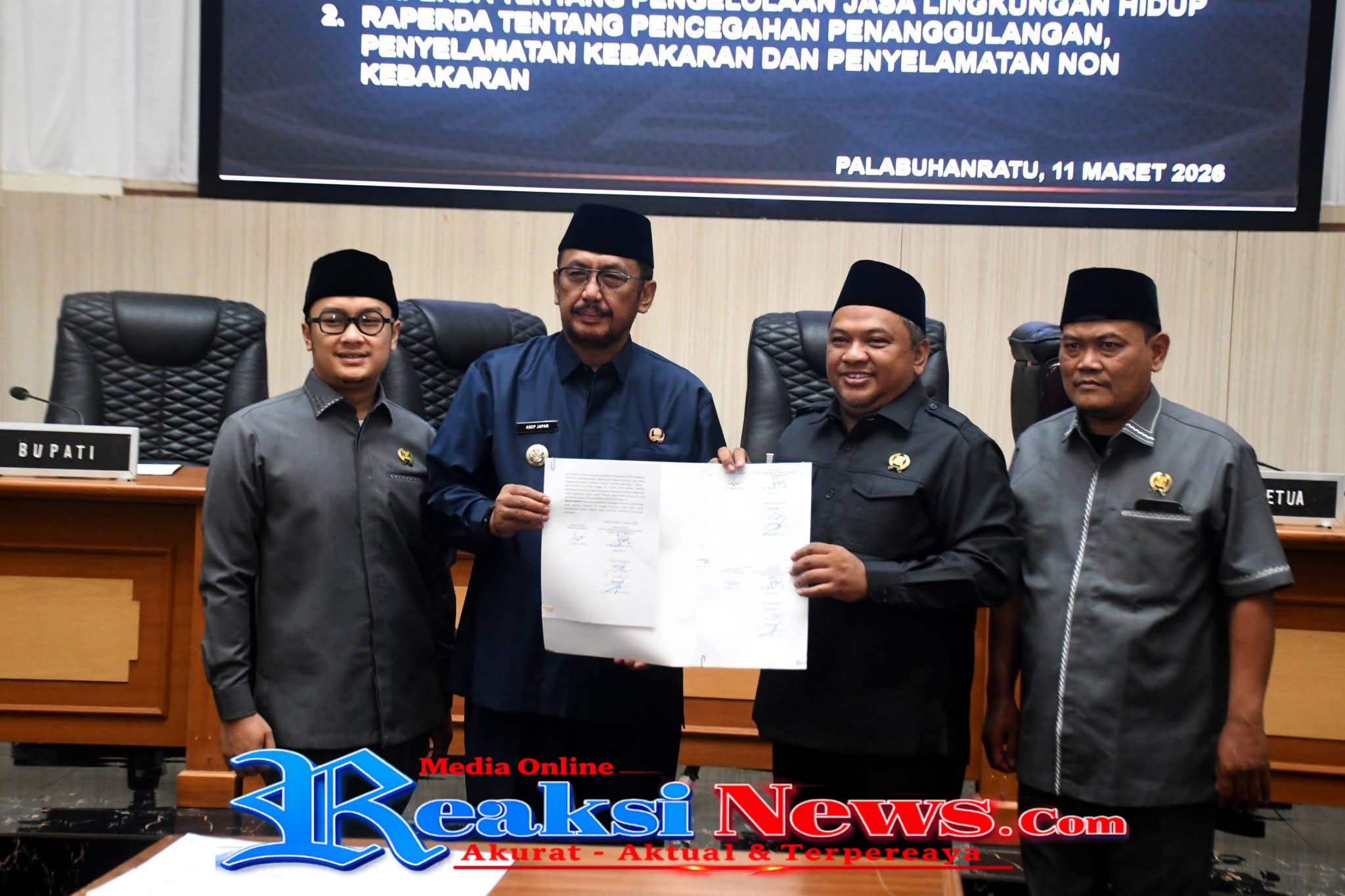 REAKSINEWS.COM || SUKABUMI – DPRD Kabupaten Sukabumi menggelar rapat paripurna dengan agenda pengambilan keputusan terhadap dua Rancangan Peraturan Daerah (Raperda) usul prakarsa DPRD, yakni Raperda tentang Pengelolaan Jasa Lingkungan Hidup serta Raperda tentang Pencegahan, Penanggulangan, serta Raperda tentang Penyelamatan Kebakaran dan Penyelamatan Non Kebakaran. Rapat berlangsung di ruang sidang paripurna DPRD Kabupaten Sukabumi, Rabu (11/3/2026).