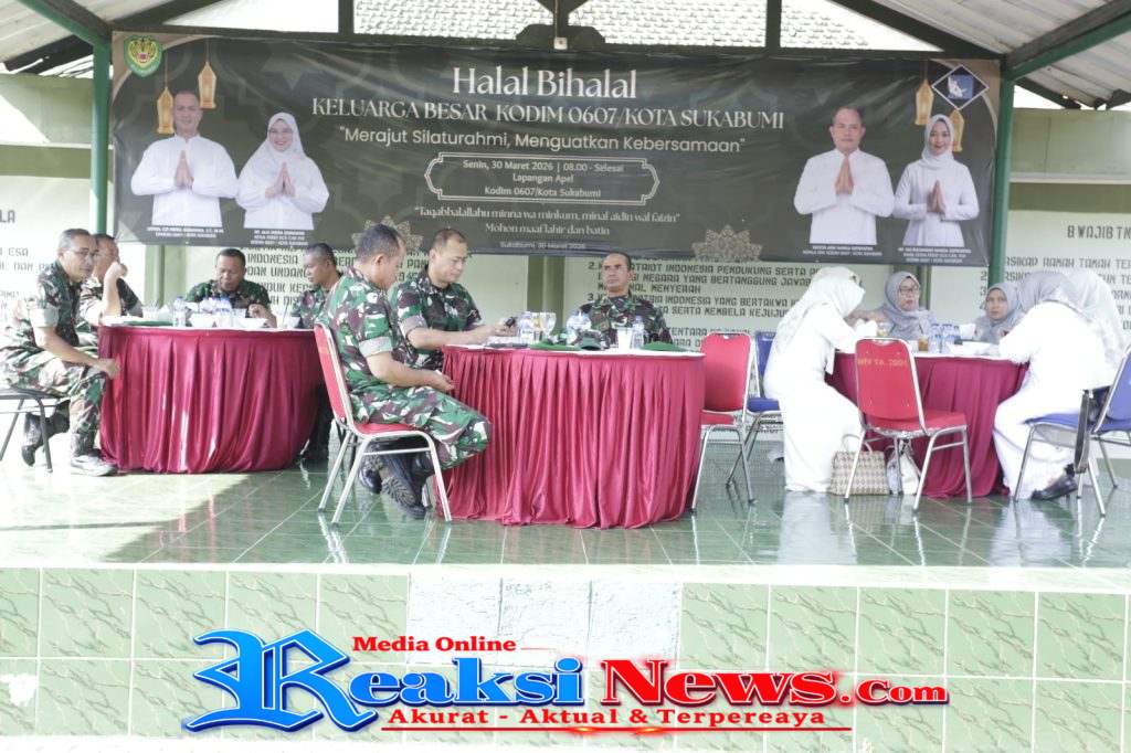 REAKSINEWS.COM || SUKABUMI – Dalam suasana penuh kebersamaan dan semangat Idul Fitri, Kodim 0607/Kota Sukabumi menggelar kegiatan Halal Bihalal 1 Syawal 1447 H/2026 M Kegiatan tersebut berlangsung di Lapangan Upacara Makodim 0607/Kota Sukabumi, Jalan RA Kosasih, Desa Sukaraja, Kecamatan Sukaraja, Kabupaten Sukabumi, dengan diikuti sekitar 400 peserta, Senin,30/03/2026).