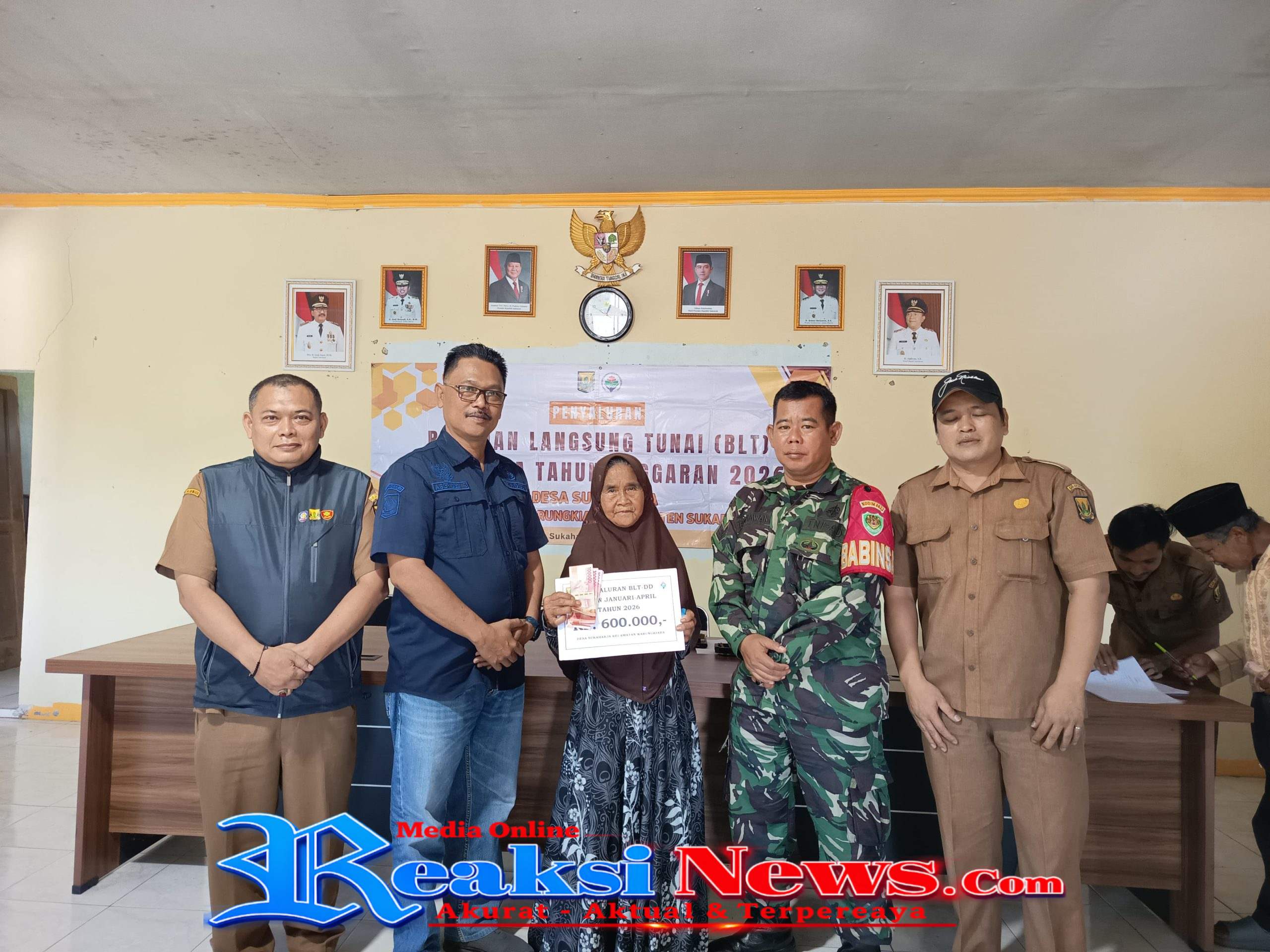 REAKSINEWS.COM || SUKABUMI – Serka Enceng Setiawan, Babinsa Desa Sukaharja, Koramil 2203/Warungkiara, melaksanakan monitoring kegiatan realisasi pembagian Bantuan Langsung Tunai Dana Desa (BLT DD) di Aula Desa Sukaharja, Kecamatan Warungkiara, Kabupaten Sukabumi, Jawa Barat, Selasa (14/4/2026).