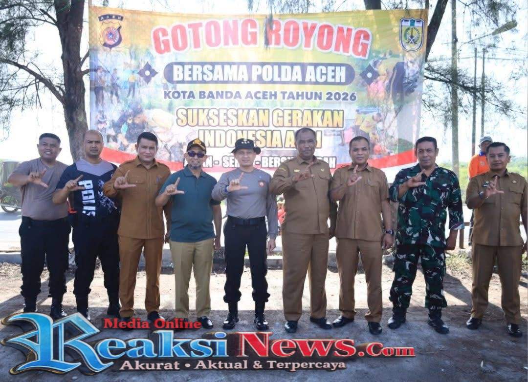 REAKSINEWS.COM || BANDA ACEH – Dirsamapta Polda Aceh Kombes Pol. Ery Apriyono, S.I.K., M.Si mewakili Kapolda Aceh memimpin kegiatan gotong royong massal di kawasan Pasar Al-Mahirah, Lamdingin, Banda Aceh, Selasa pagi, 14 April 2026.