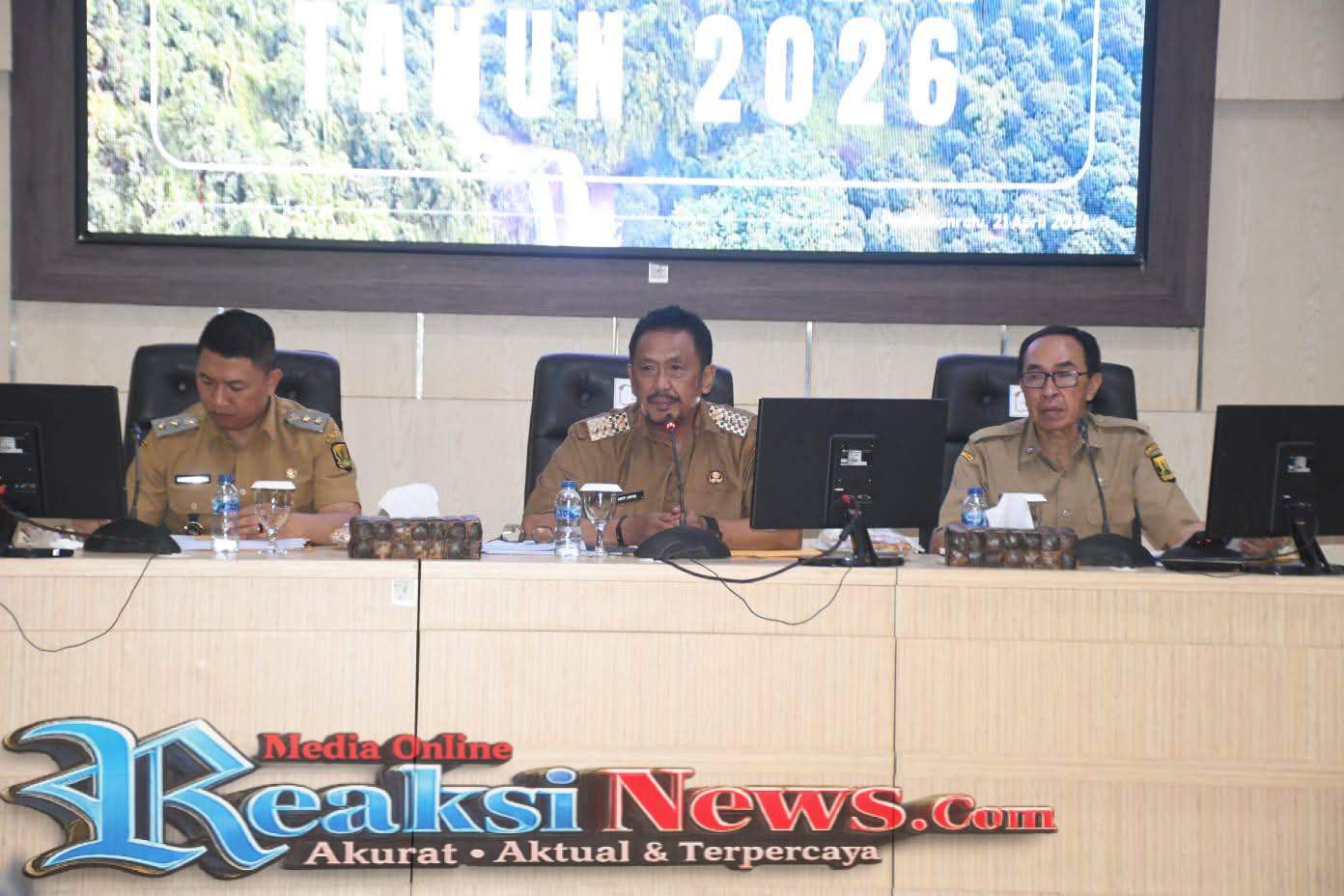 REAKSINEWS.COM || SUKABUMI – Bupati Sukabumi H Asep Japar memimpin Rapat Dinas Bulan April 2026 yang digelar di Aula Sekretariat Daerah Kabupaten Sukabumi, Selasa (21/4/2026). Rapat yang dipandu Sekretaris Daerah H Ade Suryaman ini dihadiri Wakil Bupati H Andreas, kepala perangkat daerah, asisten daerah, staf ahli, kepala bagian, hingga para camat se-Kabupaten Sukabumi.