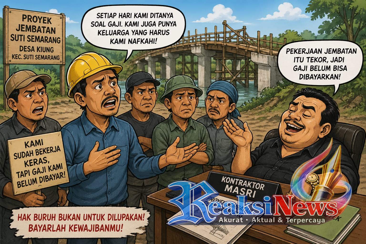 REAKSINEWS.COM || BENGKAYANG KALBAR – Nasib para pekerja proyek Jembatan Sepungut di Desa Kiung, Kecamatan Suti Semarang, Kabupaten Bengkayang, kini memprihatinkan.