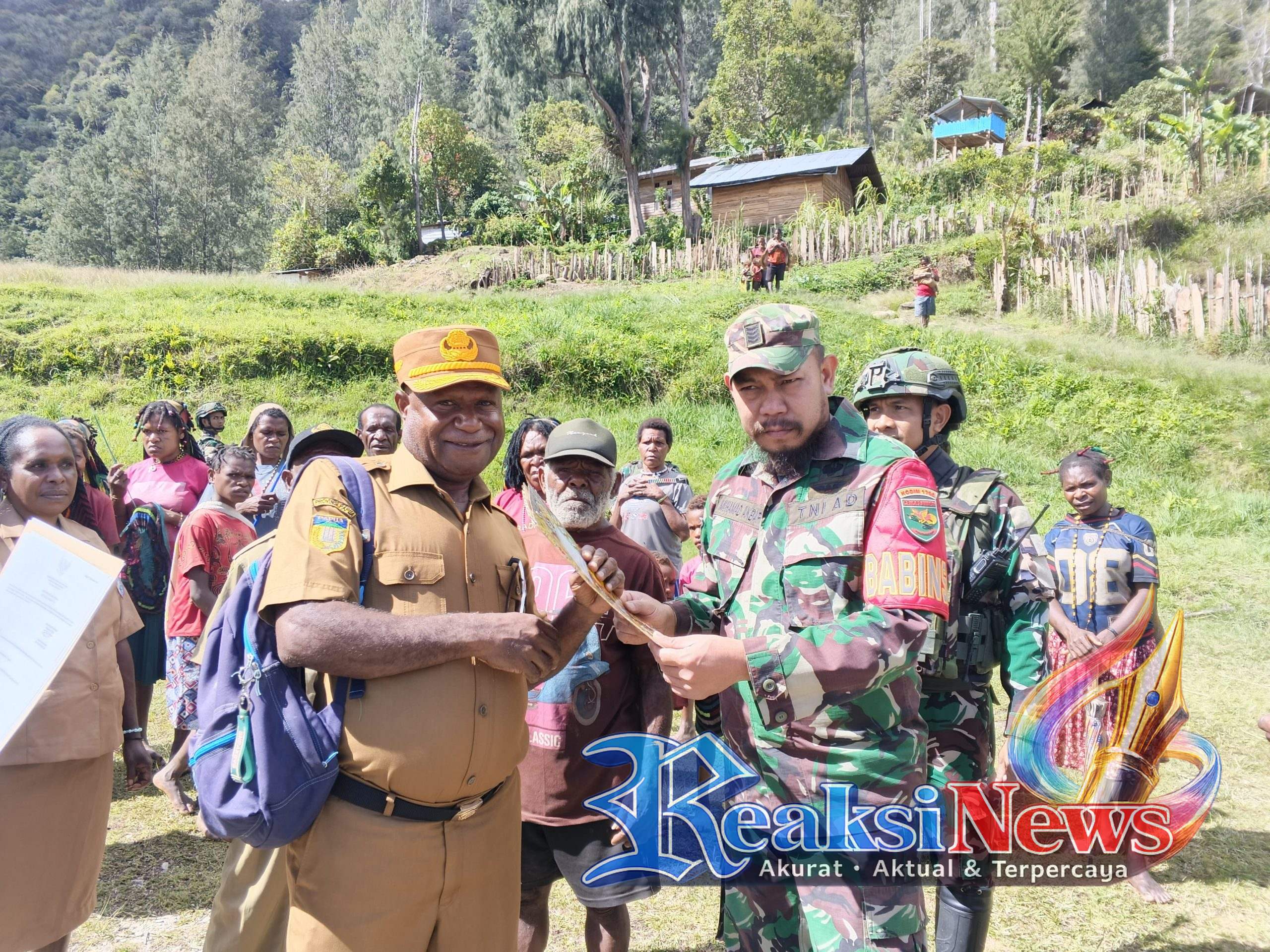 REAKSINEWS.COM || INTAN JAYA PAPUA TENGAH -;Satgas Pamtas RI-PNG Mobile Yonif 113/Jaya Sakti menyambut kunjungan kerja dari Sekretaris Daerah Kabupaten Intan Jaya, Bapak Aser Mirip, SE. Kunjungan ini beragenda dalam rangka penyerahan sertifikat tanah Koramil dan Polsek Homeyo sekaligus pemberian bantuan sembako kepada jemaat Gereja Katolik Santa Kalina Pogapa. Senin, 27 April 2026.