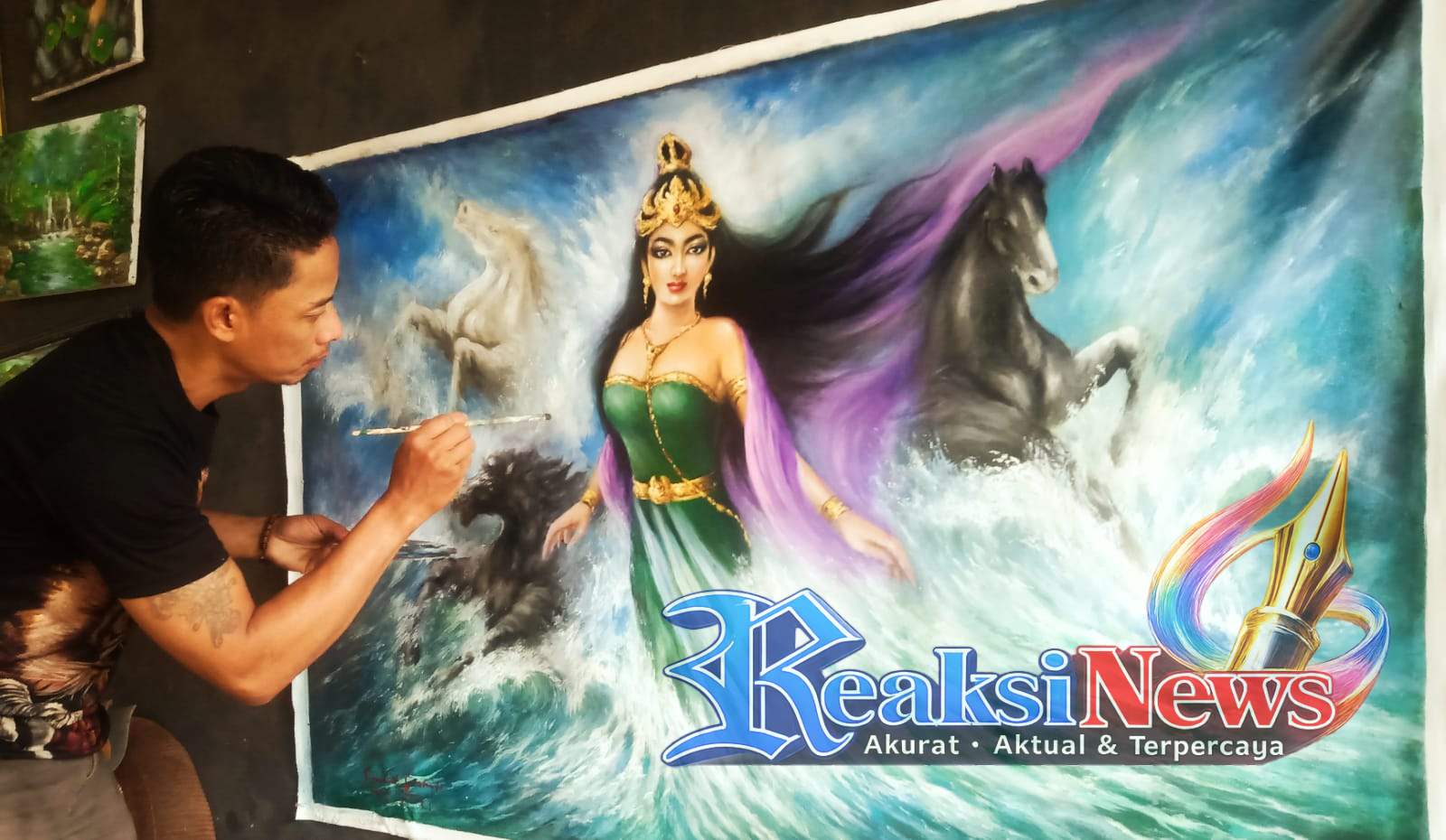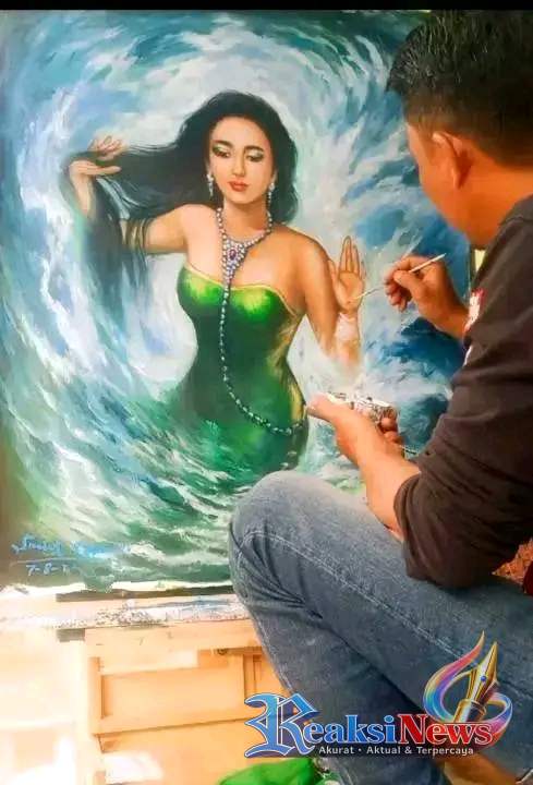 Salah satu karya yang paling menyita perhatian adalah lukisan sosok Nyi Roro Kidul. Tak hanya menampilkan keindahan visual, lukisan tersebut memancarkan aura magis yang kental—seolah menghadirkan langsung Ratu Pantai Selatan ke hadapan penikmat seni. Detail yang halus berpadu dengan ekspresi yang tajam menjadikan setiap karyanya terasa bernyawa.